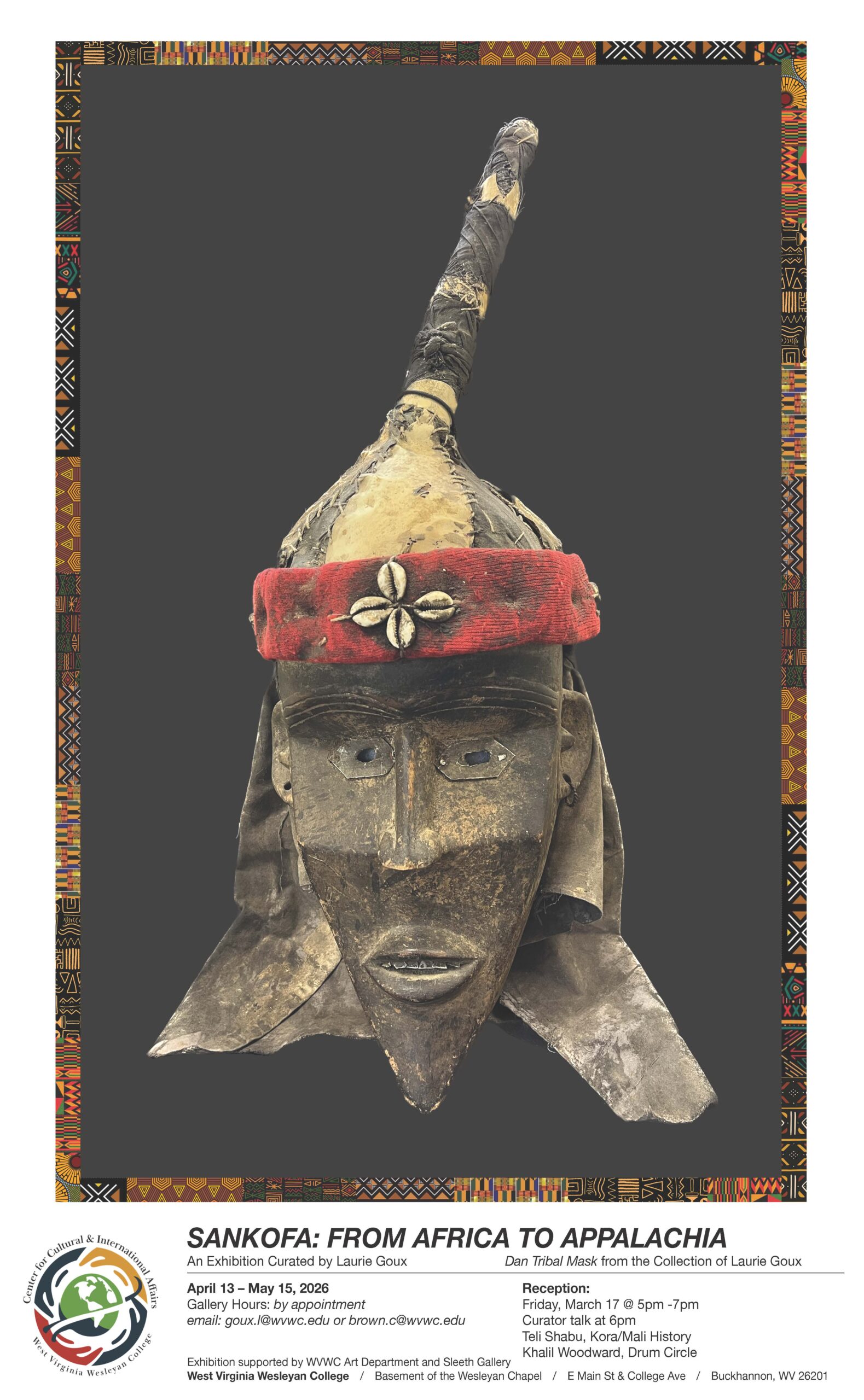 BUCKHANNON, West Virginia — Sankofa: From Africa to Appalachia, a unique exhibit, opens at West Virginia Wesleyan College Friday, April 17 at 6 p.m. The exhibit will be located in the lower-level Wesley Chapel space.