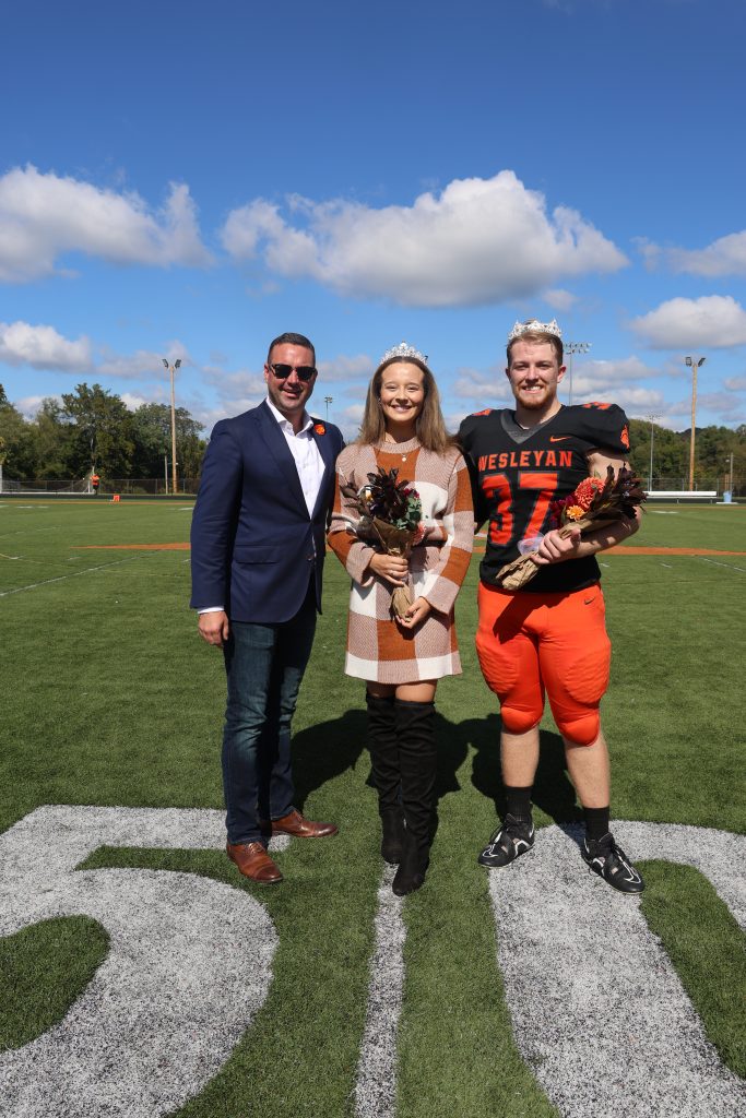BUCKHANNON, West Virginia – West Virginia Wesleyan College students voted seniors Talia Cooper and Hunter Williams as Homecoming Royalty and after a quick kiss on the field – the couple is engaged – Williams ditched his crown for his helmet to return to the Bobcat locker room during halftime Saturday.